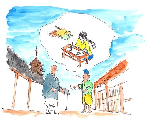 上 その3 幻夢は知らず知らず心も浮かれ、足が地につかず、自分の房に帰って行きましたが、道すがら、「たとえ日々の勤めは欠くことになっても、あの方と連れ立って東坂本に下ればよかった。」と思います。そうはいっても引き返すことはできず、先刻の稚児…